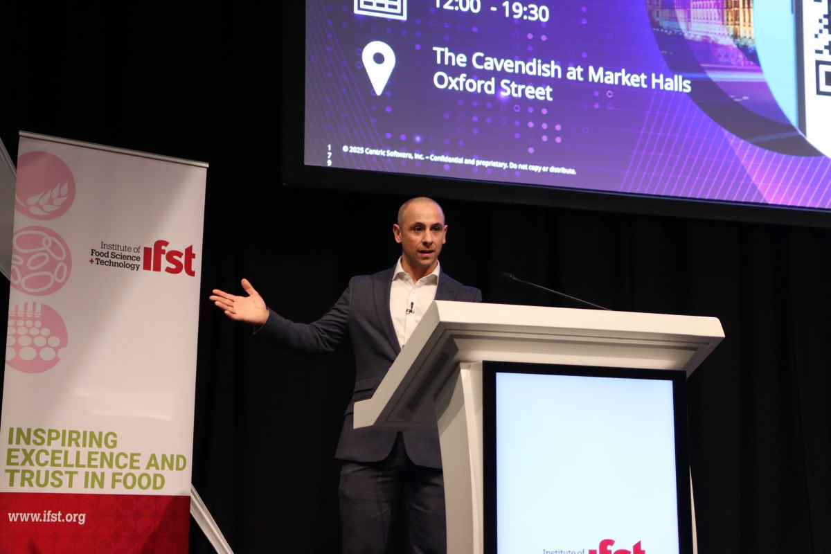 After lunch, delegates heard from industry leaders in the sponsored sessions. Ryan Rafferty of Centric Software explored digitalisation and traceability in “From Crop to Code: Resilient Food Innovation in a Digital Era,” demonstrating how data can be used to strengthen both sustainability and efficiency. James Brace from Daymer Ingredients then explored resilience in ingredient supply chains, highlighting how AI can improve demand planning and reduce costs, while emphasising that human expertise remains essential.
