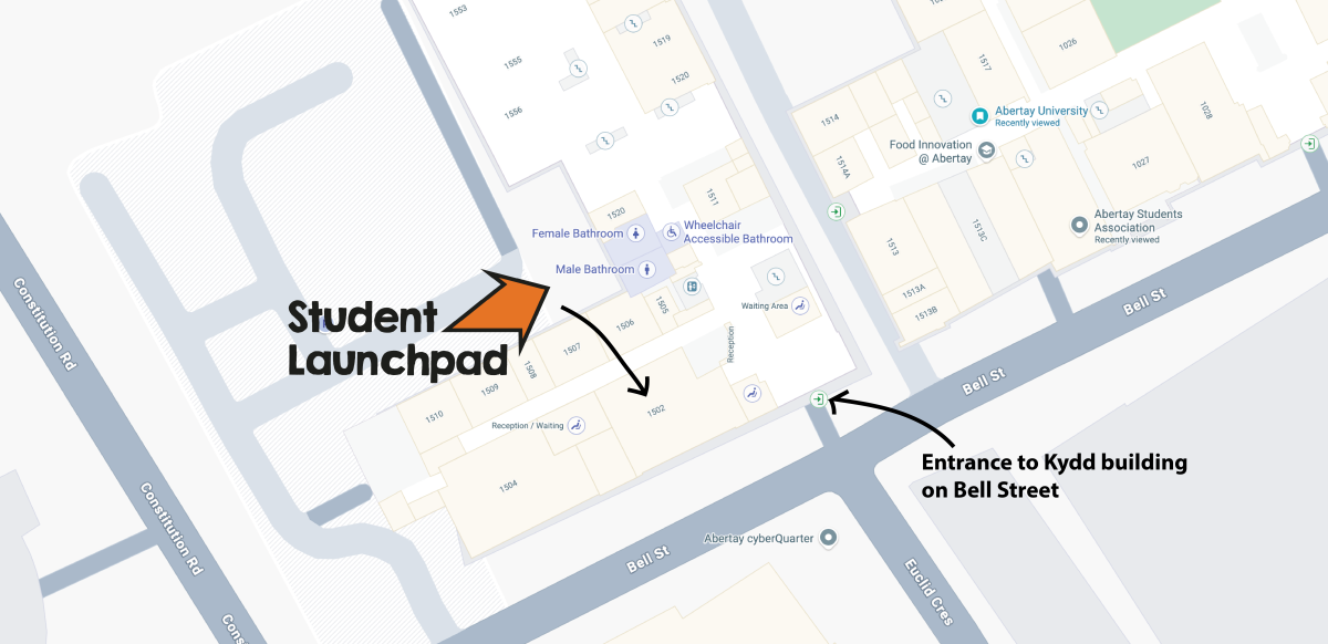 Enter the Kydd Building on Bell Street. The events room (1502) is on the ground floor beside reception.